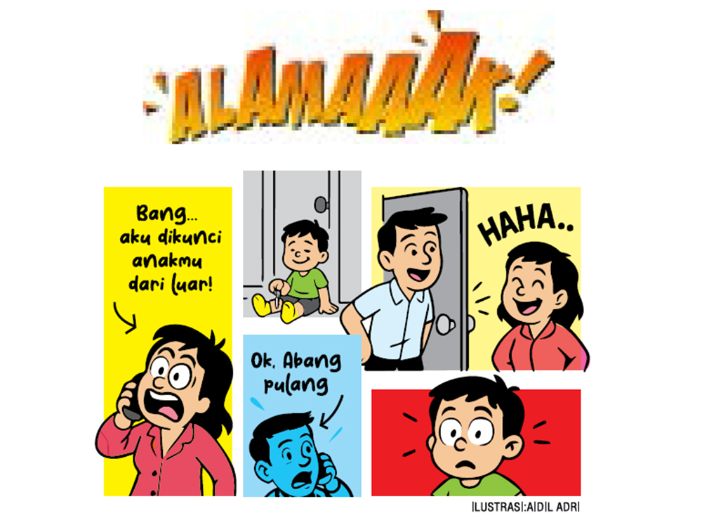 Alamaaak….!!! Ramzi langsung pulang, dia mendapati putranya sedang berdiri di depan pintu sambil memutar mutar kunci kamar.