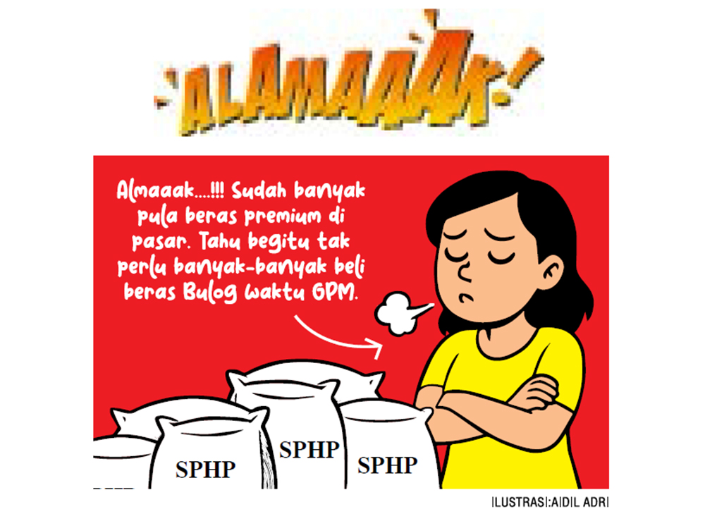 ”Almaaak….!!! Sudah banyak pula beras premium di pasar. Tahu begitu tak perlu banyak-banyak beli beras Bulog waktu GPM. Mau beli beras premium, beras Bulog masih banyak pula di rumah,” katanya.(wir)