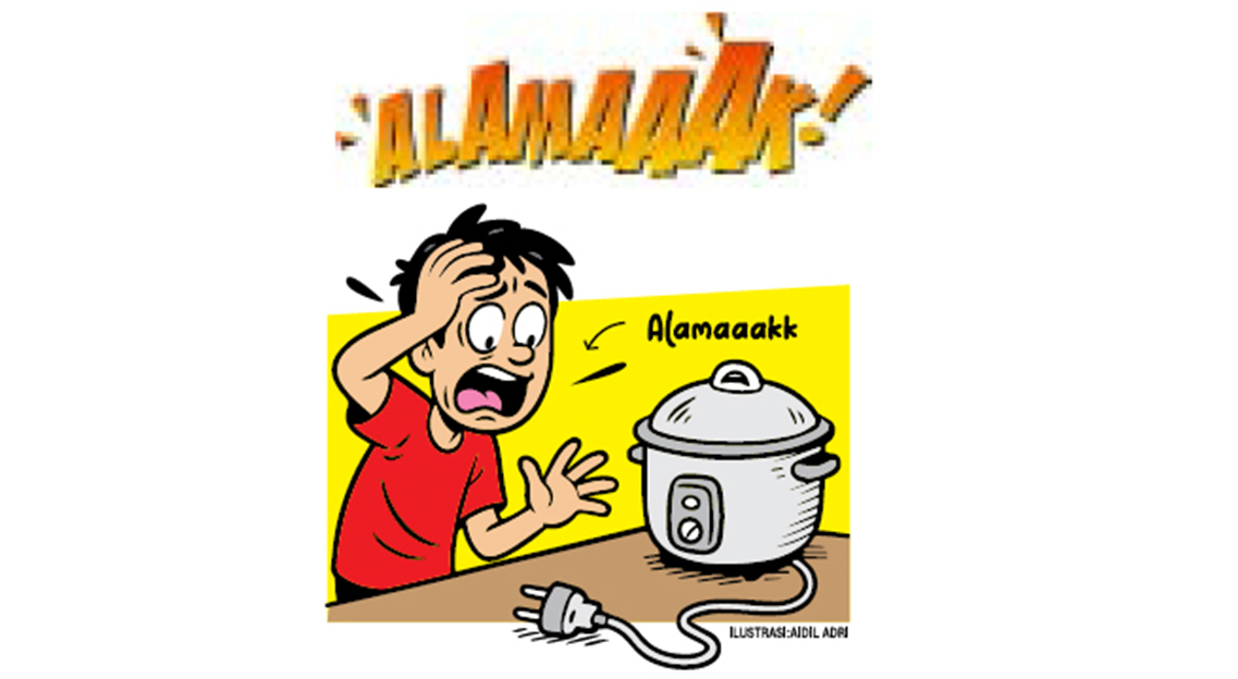 ”Alamaaakk…!!! Ternyata rice cooker -nya belum belum saya ceklek-kan. Terpaksalah menunggu sampai nasinya matang,” ucapnya sambil menahan lapar.(dof)