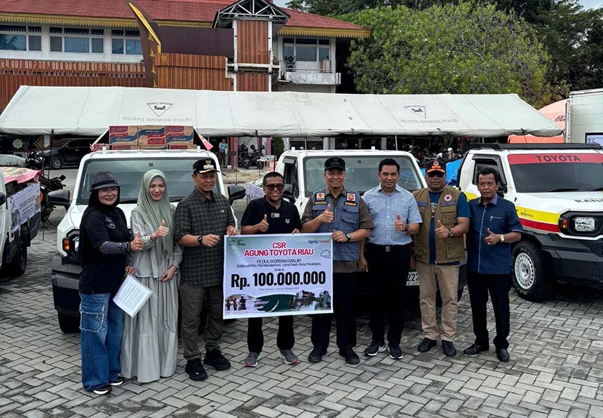 Regional Manager Agung Toyota Wilayah Barat, Mahmud Fauzi mengatakan, merupakan komitmen Agung Toyota untuk membantu meringankan beban warga yang terdampak bencana. Bantuan yang diberikan berupa sembako dan juga pakaian anak hingga dewasa yang diterima oleh Walikota Kota Pekanbaru di (MPP) Mal Pelayanan Publik Kota Pekanbaru.