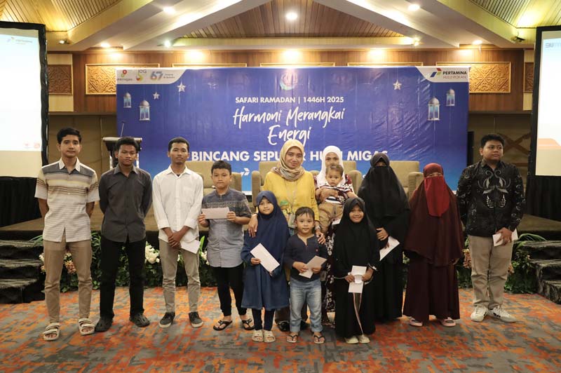 Corporate Secretary PHR Regional 1-Sumatera Eviyanti Rofraida foto bersama dengan anak almarhum wartawan di Riau usai buka puasa bersama, Selasa (11/3/2025).