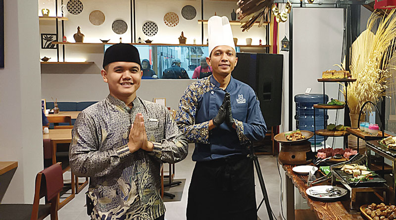 Executive Chef Indra Hermawan (kanan) dan Restaurant and Banquet Manager Ryan Riyadi siap memberikan pengalaman berbuka tidak terlupakan di Hotel Batiqa Pekanbaru, Rabu (13/3/2024). (HENDRAWAN KARIMAN/RIAU POS)