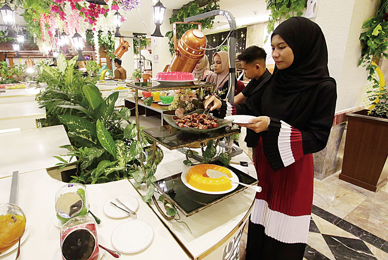 Pengunjung menikmati beragam menu berbuka puasa bertemakan Sparkling Ramadan di Hotel Mutiara Merdeka, Pekanbaru, Kamis (14/3/2024). (MHD AKHWAN/RIAUPOS)