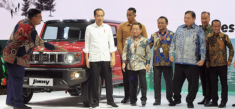 Presiden RI Joko Widodo mengunjungi Booth Suzuki disambut direksi dan manajemen, usai pembukaan IIMS 2024 di JIExpo Kemayoran, Jakarta, Kamis (15/2/2024). (PT SIS UNTUK RIAU POS)