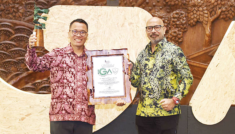 Head of Community Development Smartfren Dani Akhyar (kiri), menerima Indonesia Green Awards 2024 di Jakarta, Rabu (17/1/2024). Smartfren berhasil meraih penghargaan bergengsi Indonesia Green Awards 2024 melalui produk Smartfren eSIM dan Edukasi Lingkungan Bebas Sampah. (SMARTFREN UNTUK RIAU POS)
