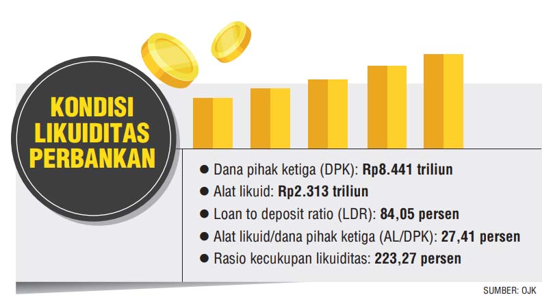 Bantalan permodalan perbankan cukup besar. Itu tecermin dari capital adequacy ratio (CAR) yang tinggi sebesar 27,72 persen. Hal tersebut mampu menyerap fluktuasi nilai tukar rupiah maupun suku bunga yang masih tertahan relatif tinggi.