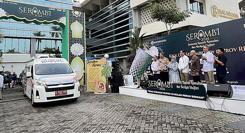 Pelepasan mobil perbankan dan kas keliling menjadi penanda Kick Off program Semarak Rupiah Ramadan dan Berkah Idulfitri (Serambi) 2024 yang berlangsung di halaman Kantor Bank Indonesia Provinsi Riau, Rabu (20/3/2024). (Siti Azura/Riau Pos)