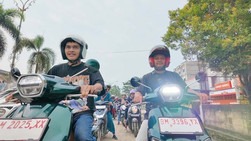 Komunitas Bikers Honda Scoopy saat konvoi dalam acara spesial bertajuk Ramadan Bikers Honda di Pangkalan Kerinci, HODA UNTUK RIAU POS KONVOI: