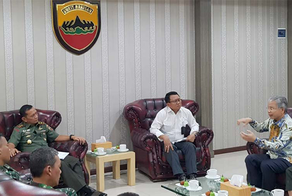 PEKANBARU (RIAUPOS.CO) – SKK Migas bersama PT. Chevron Pacific Indonesia (PT CPI) menjalin kemitraan dan kerja sama dengan Komando Daerah Militer (Kodam) I/Bukit Barisan. Dalam gambar tampak Pangdam I Bukit Barisan Mayjen TNI MS Fadilah dan Deputi Dukungan Bisnis SKK Migas M Attok Urrahman mendengarkan penjelasan dari Presiden Direktur PT CPI Albert Simanjuntak mengenai operasi minyak dan gas bumi pada Selasa (22/10/2019) di Makodam I/BB, Jln Gatot Subroto Km 7,5 Medan.