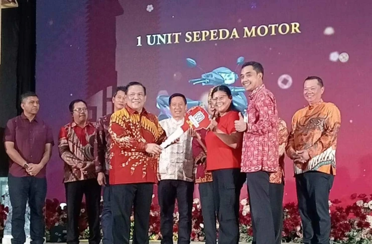 PEKANBARU – Perayaan Imlek Bersama 2577 Kongzili yang digelar di Ballroom Hotel Furaya Pekanbaru, Ahad (22/2), berlangsung semakin meriah dengan dukungan dari PT Bank Rakyat Indonesia (Persero) Tbk Pekanbaru yang menyerahkan satu unit sepeda motor sebagai hadiah utama doorprize.