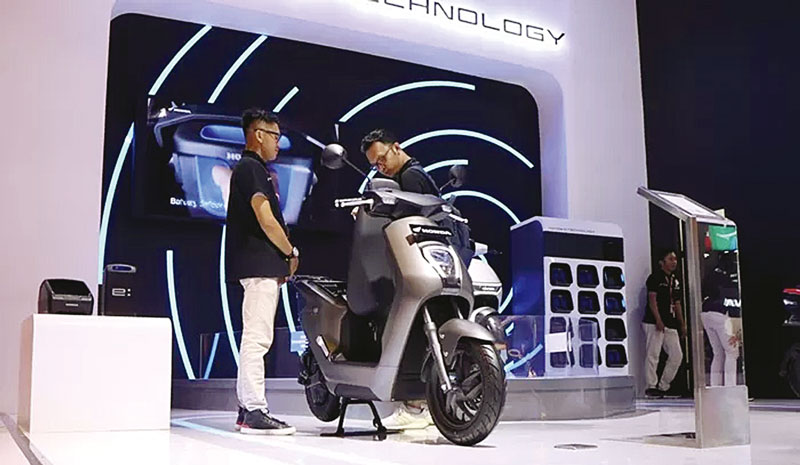 Skuter listrik pertama AHM ini menghadirkan desain modern dan compact yang memperhatikan kenyamanan penggunanya seperti material bahan berkualitas tinggi, digital panel meter, dek kaki luas, penyimpanan di bawah jok, soket pengisi daya USB, hingga pijakan kaki nyaman untuk pembonceng.(jpg)