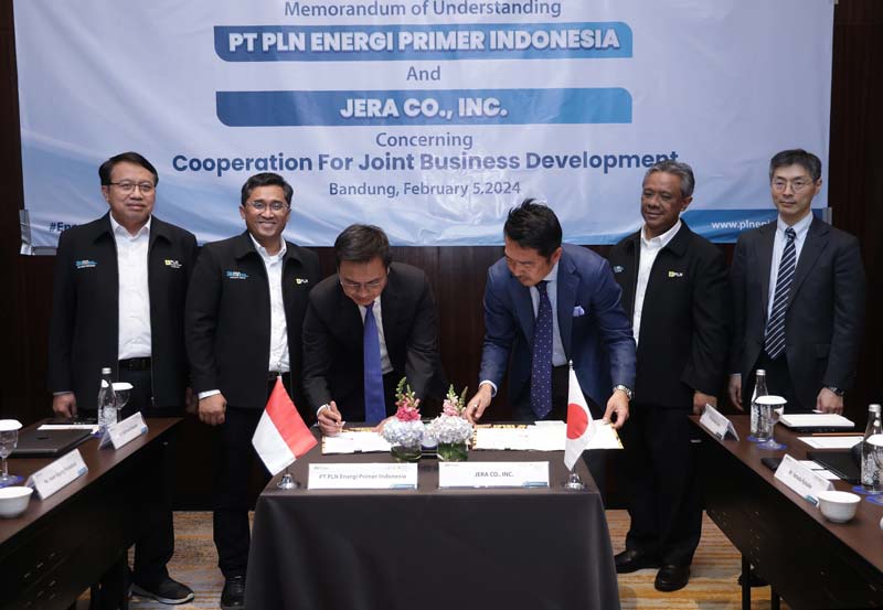 Penandatanganan nota kesepahaman dilakukan oleh Direktur Gas dan BBM PLN EPI Rakhmad Dewanto bersama Executive Officer, Head of the Platform Business Group JERA Shinsuke Nakayama di Bandung, Senin (5/2/2024).
