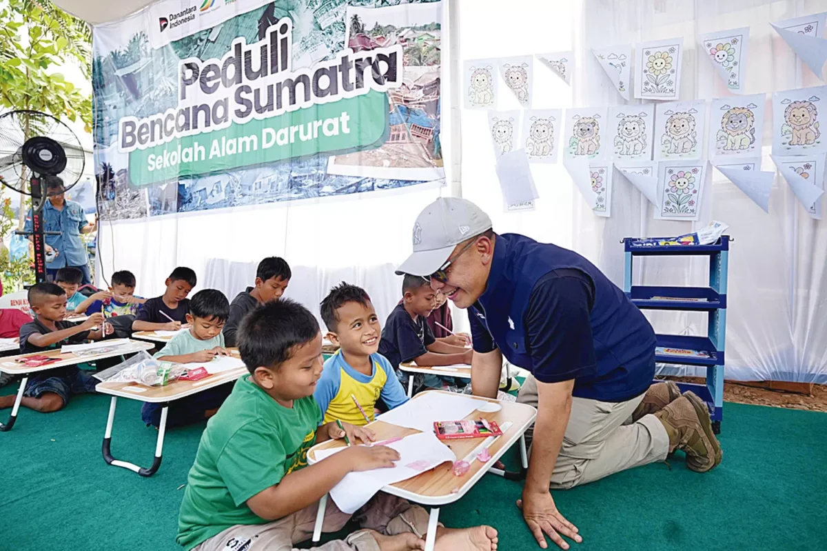Dalam kesempatan tersebut, PTPN IV PalmCo meresmikan Sekolah Alam Darurat bagi anak-anak penyintas banjir, sekaligus menyalurkan bantuan logistik khusus ibu dan anak. Program ini menjadi bagian dari pendekatan pemulihan yang tidak hanya menyentuh pembangunan fisik, tetapi juga aspek sosial dan psikologis masyarakat terdampak.