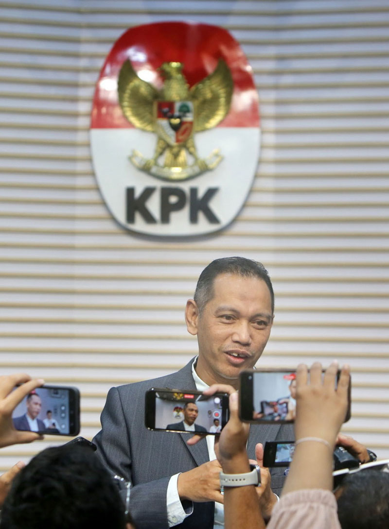 Wakil Ketua KPK Nurul Ghufron memberikan keterangan pers di Gedung Merah Putih KPK C1 Kuningan Jakarta, Rabu (7/2/2024). (MUHAMAD ALI/JPG)