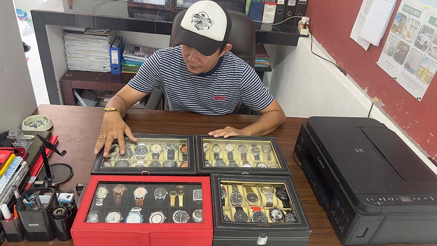 Pria yang berprofesi sebagai konten kreator ini sedikit malu, ia tampak mengelak elegan dengan seluruh koleksi jam tangan lawas, mewah, bernilai puluhan juta rupiah hasil buruan dari berbagai daerah.