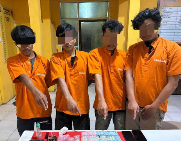 Polisi Ringkus Empat Pemuda Sedang Konsumsi Sabu di Tapung Hilir