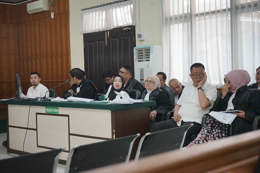Eks PJ Wali Kota Pekanbaru Risnandar Mahiwa, eks Sekdako Pekanbaru Indra Pomi Nasution, eks Plt Kabag Umum Setdako Novin Karmila saat menjalani sidang kasus dugaan korupsi di pemerintah Kota Pekanbaru, Selasa (22/7/2025). ft : EVAN GUNANZAR/RIAU POS