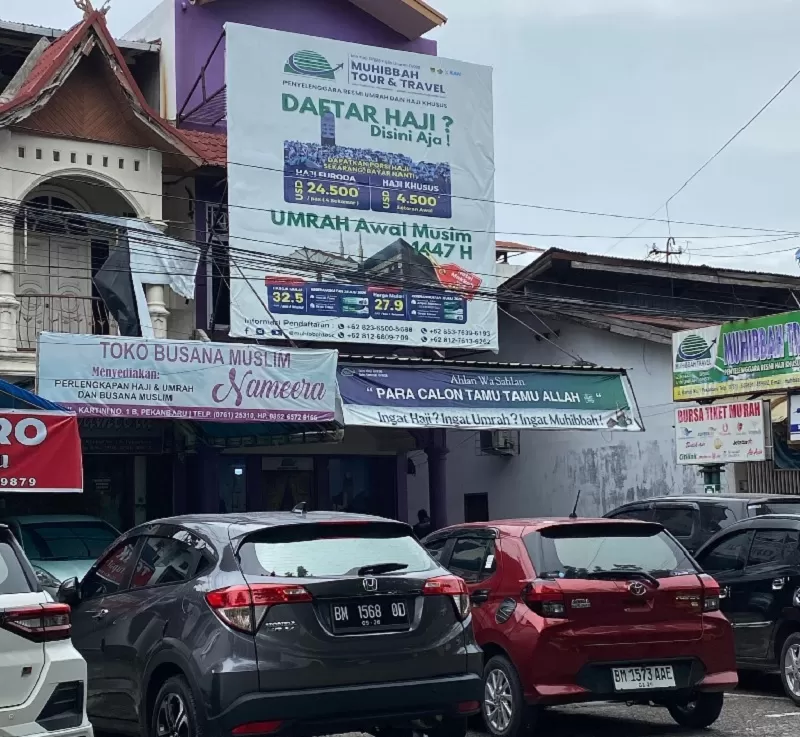 Aktivitas Kantor Muhibbah Tour & Travel yang ada di Jalan Kartini no 1 Pekanbaru masih berjalan normal, Kamis (11/9/2025). (Soleh Saputra/Riaupos.co)