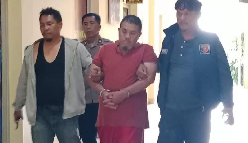 Elvis Ardi (EA), pelaku pembunuhan istrinya, Juniwarti saat di tangkap Reskrim Polres Kuansing 26 Februari 2025 lalu. (DESRANDI CANDRA/RIAUPOS.CO)