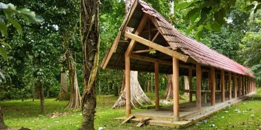 Di dalam Hutan Kota Pulau Bungin, Telukkuantan, terdapat juga rumah jalur dengan panjang puluhan meter. (Mardias Can / Riau Pos)
