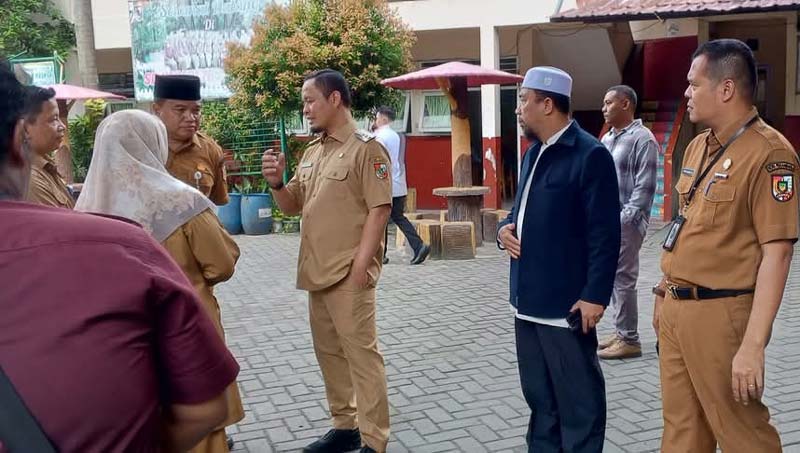 Kota Pekanbaru Agung Nugroho didampingi Kadisdik Abdul Jamal meninjau SDN 43 Pekanbaru, Senin (10/3/2025).