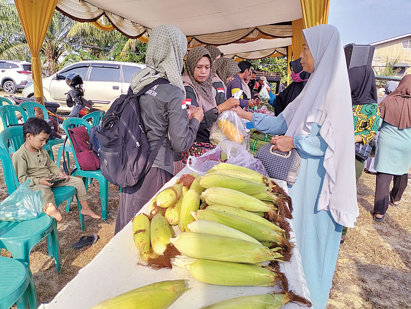 Gerakan Pasar Murah (GPM) di Bukit Timah yang menjual hasil pertanian dipadati pembeli, Kamis (28/3/2024). (SYAHRI RAMLAN/dumai)