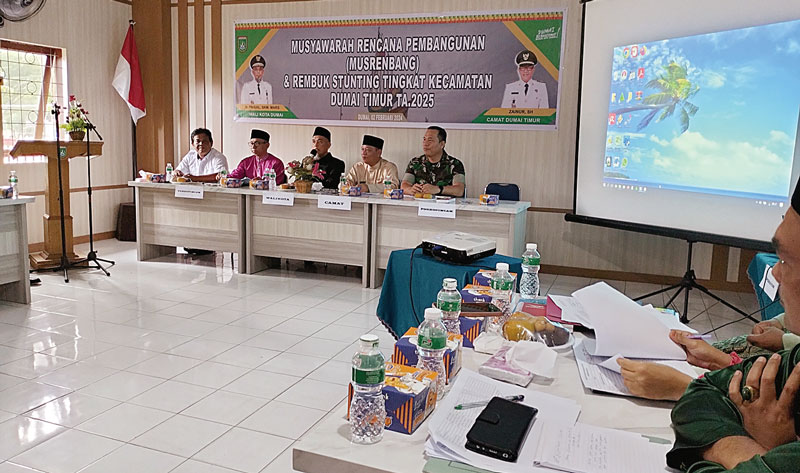 DUMAI (RIAUPOS.CO) – Wali Kota Dumai H Paisal SKM MARS membuka dan sekaligus memimpin rapat Musyawarah Rencana Pembangunan (Musrenbang) dan Rembuk Stunting Kecamatan Dumai Timur Tahun Anggaran 2025, Jumat (2/2). Dalam rapat Musrenbang tersebut, Paisal minta masing-masing kelurahan mengusulkan lima program skala prioritas saja.