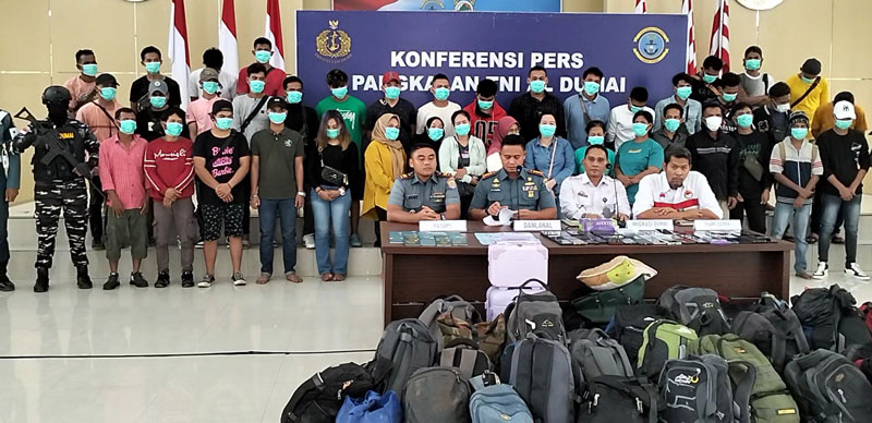 Penegasan tersebut disampaikan oleh Komandan Lanal Dumai Kolonel Laut (P) Boy Yopi Hamel MTr Hanla MM, Rabu (6/3) ketika melakukan konferensi pers di gedung pertemuan di Mako Lanal Dumai. ”Puluhan PMI itu diamankan, Rabu (6/3) sekitar pukul 05.35 WIB di pesisir Pantai Pelintung,” kata Boy.