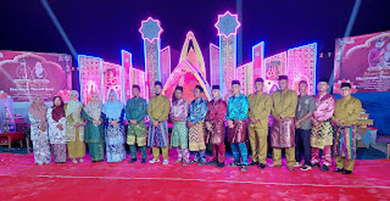 Camat Pinggir Zama Rico Dakanahay foto bersama usai membuka MTQ sekaligus peringatan Tahun Baru Islam 1 Muharram 1446 H di halaman Kantor Lurah Titian Antui, Ahad (7/7/2024) malam.(rpg)