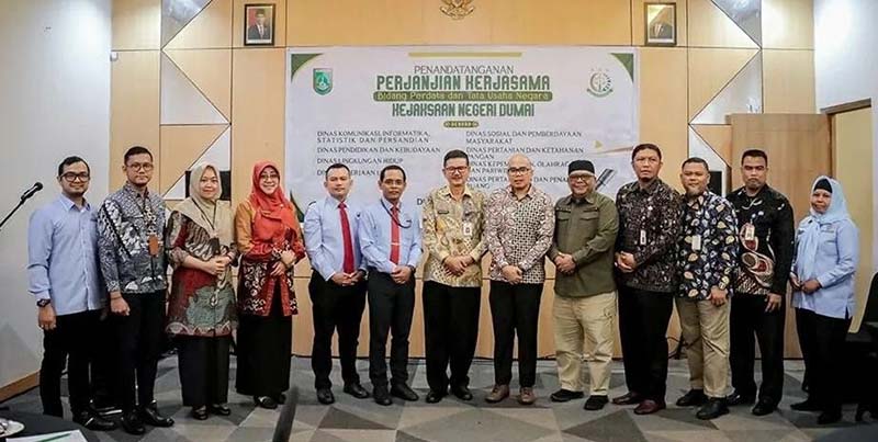 Penandatangan kerjasama dilakukan Kejari Kota Dumai, Agustinus Herimulyanto, bersama 8 Kepala Organisasi Perangkat Daerah (OPD) terkait yakni Dinas Komunikasi, Informatika, Statistik, dan Persandian (Diskominfotiksan), Dinas Pendidikan dan Kebudayaan (Disdikbud), Kepala Dinas Lingkungan Hidup (DLH), Dinas Pekerjaan Umum (PU).