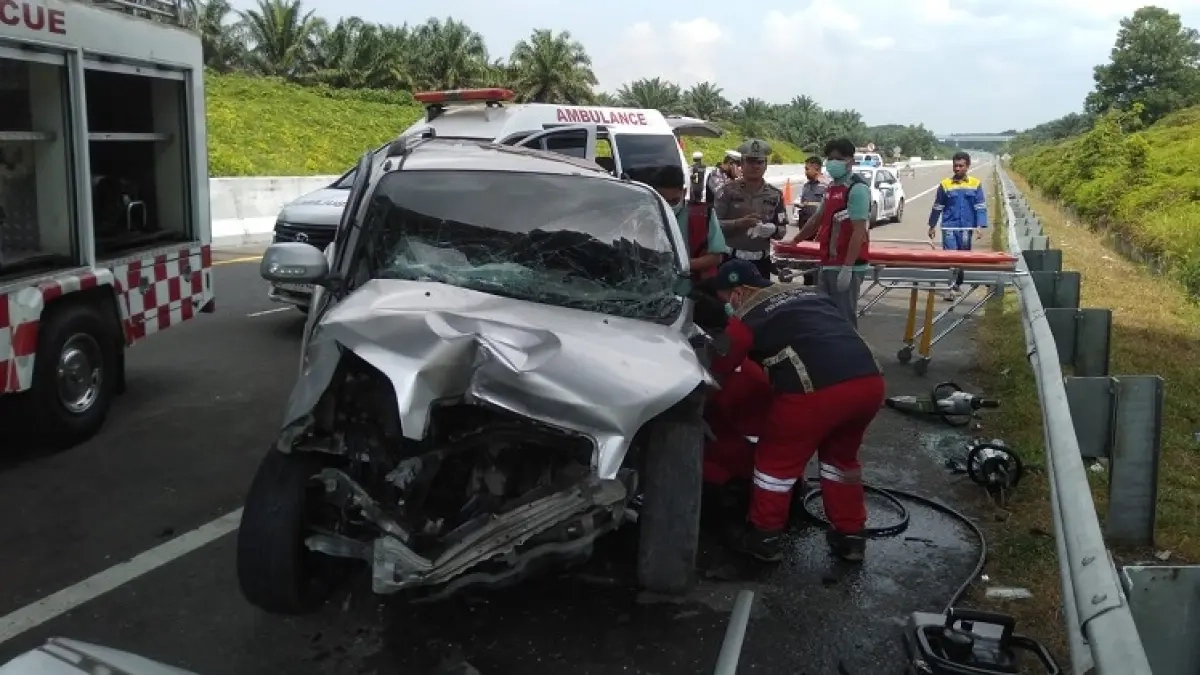 Peristiwa tersebut terjadi di Km 38 Tol Permai pada Ahad (19/4/2026) sekitar pukul 13.40 WIB. Informasi ini disampaikan oleh Kasat Patroli Jalan Raya Ditlantas Polda Riau, AKBP Eko Baskara.