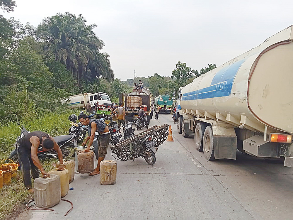 Atas insiden ini, Azhari langsung menelpon dan berkoordinasi dengan pihak perusahaan untuk mengirimkan bantuan kendaraan tangki untuk menyedot minyak yang masih tersisa di dalam tangki.