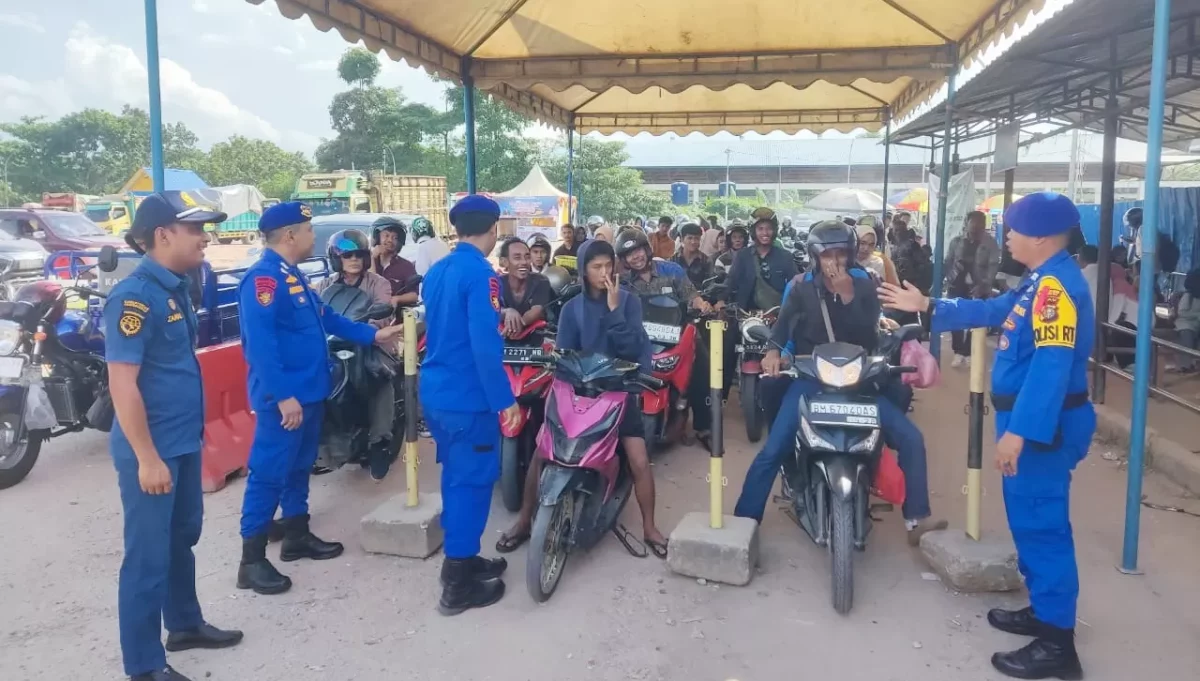 Petugas saat mengatur antrean kendaraan di Pelabuhan Ro-Ro Dumai, Selasa (24/12/2024). (Dishub Riau untuk riau pos)