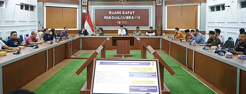 Suasana sosialisasi Perwako Dumai Nomor 89/2023 tentang Pedoman Pelaksanaan Kegiatan Pembangunan Sarana dan Prasarana Kelurahan di ruang rapat Wan Dahlan Ibrahim, Kantor Wali Kota Dumai, Kamis (25/1/2024). (humas pemko dumai untuk riau pos.co)