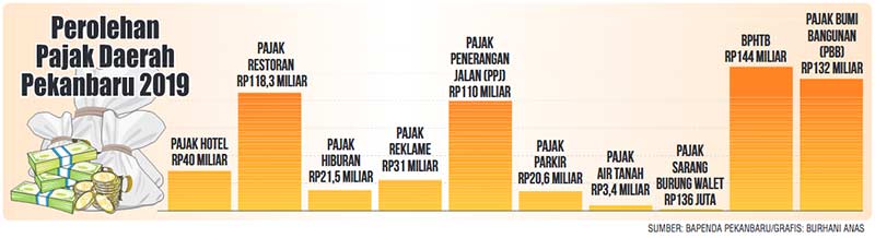 PEKANBARU (RIAUPOS.CO) — Badan Pendapatan Daerah (Bapenda) Kota Pekanbaru menutup tahun 2019 dengan performa penghimpunan pajak daerah yang cukup memuaskan. Hingga 31 Desember 2019, terkumpul Rp627 miliar pajak daerah. Meningkat Rp122 miliar dari capaian tahun 2018 lalu.