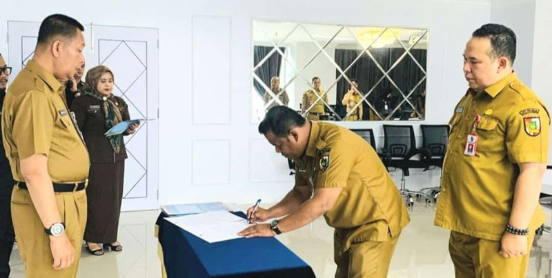 Kegiatan serah terima jabatan (sertijab) dipimpin Sekretaris Kota (Sekko) Pekanbaru Indra Pomi Nasution di gedung utama Kantor Wali Kota Pekanbaru di Tenayan Raya, Selasa (2/1).