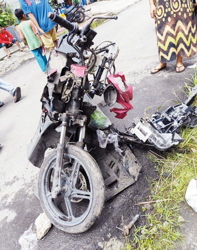 Kondisi salah satu sepeda motor yang hancur akibat tabrakan maut di Jalan Karet, Kecamatan Senapelan, Sabtu (3/2/2024). (Satlantas Polresta Pekanbaru untuk riau pos)