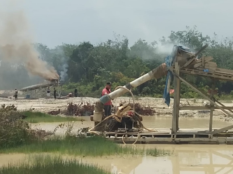 Menindaklanjuti informasi tersebut, kemudian sekira pukul 10.00 WIB, Kapolsek Benai bersama personel mendatangi lokasi PETI tersebut. Sesampainya di lokasi Desa Gunung Kesiangan dan Desa Banjar Lopak ditemukan 20 rakit PETI yang sudah ditinggal pekerja.