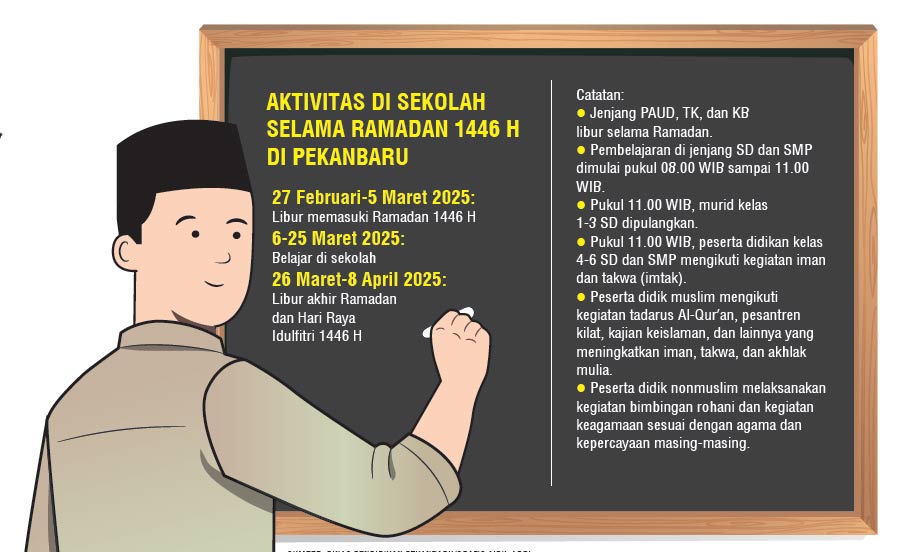 ”Pada tanggal 27 Februari sampai dengan 5 Maret 2025 libur awal Ramadan,” ujar Kepala Disdik Kota Pekanbaru Dr H Abdul Jamal MPd, Selasa (4/2).