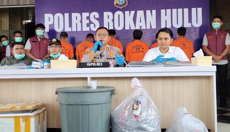 Konferensi pers di Mapolres Rohul, Selasa (4/3/2025) kasus pembunuhan harimau Sumatera.