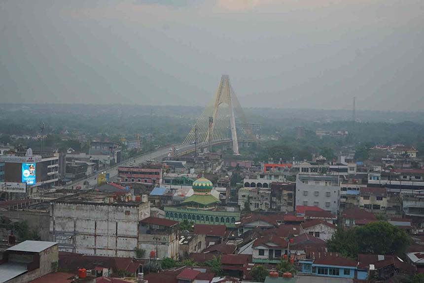 Kondisi udara Kota Pekanbaru berkabut asap, diduga akibat kebakaran hutan dan lahan (karhutla), beberapa hari lalu. (EVAN GUNANZAR/RIAU POS)