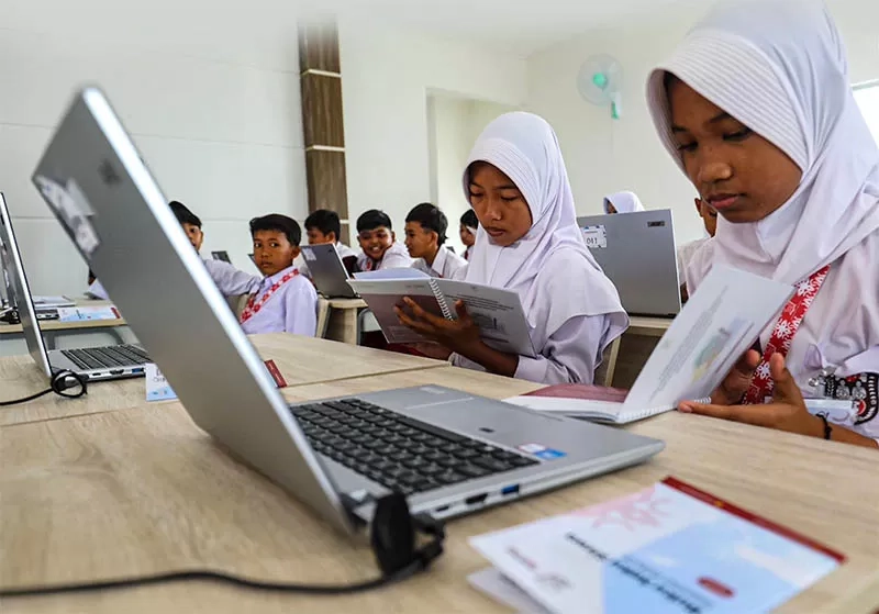 Siswa mengikuti pembelajaran melalui laptop. Kemampuan para siswa kini bisa makin terasah setelah mengikuti TKA.