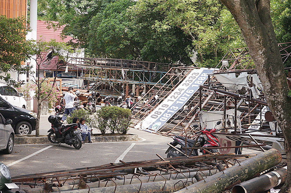 Tumpukan besi baliho iklan yang sudah dibongkar di kawasan Mal Pelayanan Publik Pekanbaru, Selasa (5/8/2025). ft : EVAN GUNANZAR/RIAU POS