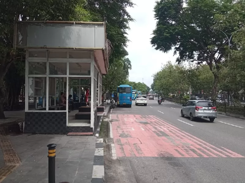 Halte Bus TMP di Jalan Jenderal Sudirman Pekanbaru. Hari ini bus TMP sudah kembali beroperasi. (M ALI NURMAN/RIAUPOS.CO)