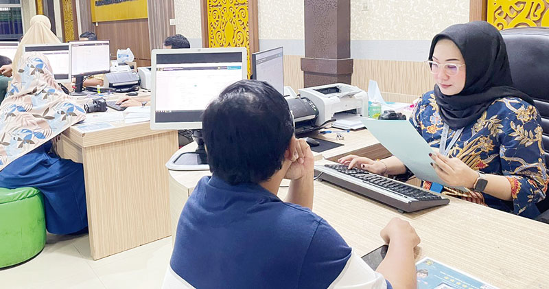 Petugas Imigrasi melayani pemohon pembuatan paspor di Kantor Imigrasi Kelas I TPI Pekanbaru, Sabtu (6/1/2024). (Humas Kantor Imigrasi Pekanbaru untuk riau pos.co)