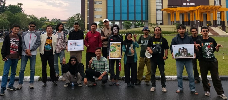 Aksi damai yang diikuti sekitar 30 orang ini melakukan berbagai aksi teaterikal. Termasuk pembacaan puisi hingga orasi. Seluruh aksi merupakan gambaran dukungan agar Polda Riau diberi kelancaran dalam mengusut pembunuhan gajah Rahman.