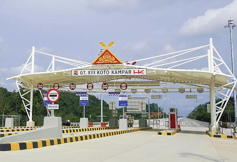 Penampakan Gerbang Tol Bangkinang-XIII Koto Kampar yang menjadi trase Jalan Tol Pekanbaru-Padang bagian JTTS saat uji coba fungsional, beberapa waktu lalu. (INSTAGRAM WIKA )