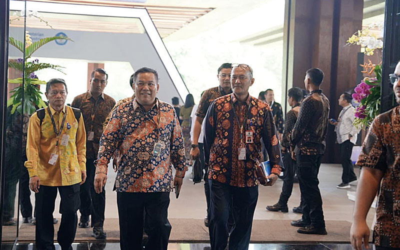 Pj Gubernur Riau SF Hariyanto (tengah) berjalan saat akan menghadiri Business Matching 2024 di Denpasar, Bali, Kamis (7/3/2024). (Diskominfo Riau untuk RiauAPos.co)
