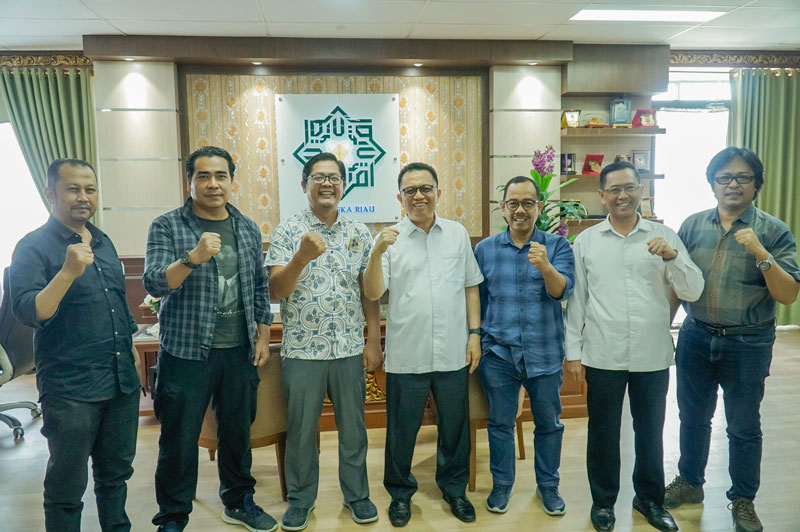 PEKANBARU (RIAUPOS.CO)- Jajaran Direksi Riau Pos Group datang berkunjung ke UIN Suska Riau, Senin (7/10/). Rombongan ini termasuk CEO Riau Pos Group Ahmad Dardiri, Direktur sekaligus Pemimpin Redaksi (Pemred) Riau Pos Firman Agus, Direktur Bisnis Riau Pos Asmawi Ibrahim, Pemred Riau Televisi (RTv) Heru Rinaldo, Manajer Iklan Riau Pos T Rasmin serta sejumlah staf.
