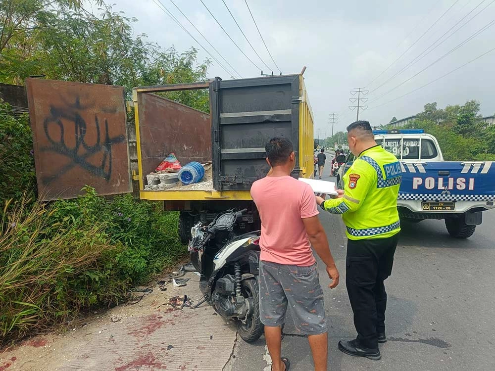 Kasat Lantas Polresta Pekanbaru AKP Satrio BW Wicaksana menjelaskan, kecelakaan melibatkan satu unit dump truck colt diesel dengan nomor polisi BM 9045 FO dan satu unit sepeda motor bernomor polisi BM 4004 QO.